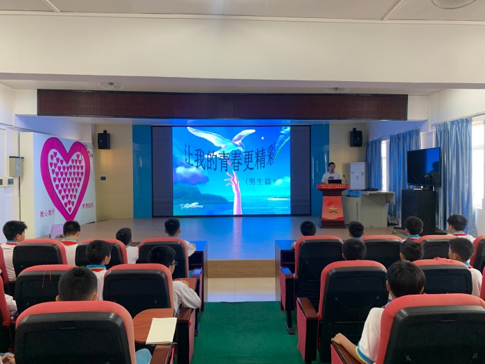 在男生專場中,郭南洪主任通過簡單易懂的講解,“大膽”說出了男生們平時難以啟齒的話題,讓男生們了解了自己青春期身體的變化、心理的變化,又通過真實(shí)的案例告訴了男生們早戀的危害性,并引導(dǎo)他們?nèi)绾握_地與女生交往。男生們?nèi)粲兴?,相信他們對自己男性角色的定位,對于青春期有了深刻的認(rèn)識。