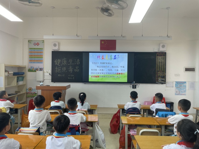 中年級(jí)班主任開(kāi)展了以“健康生活 拒絕毒品”為主題的班會(huì)教育活動(dòng)。班主任利用禁毒課件、小故事等多種形式,向同學(xué)們介紹了毒品的概念、種類、特征以及毒品的危害,并讓同學(xué)們了解青少年吸毒的原因以及毒品違法犯罪及處罰等。課件里展示了很多鮮活生動(dòng)的事例,向同學(xué)們深刻揭示了毒品對(duì)個(gè)人、家庭和社會(huì)的嚴(yán)重危害。
