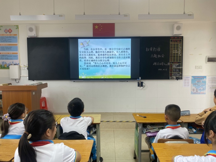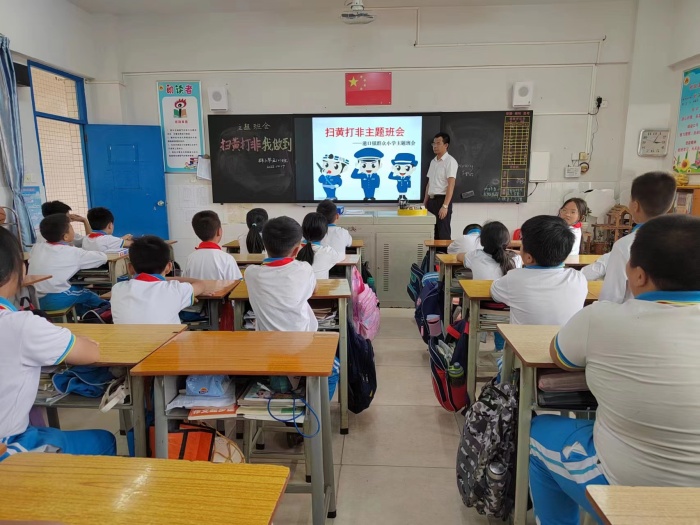 高年級(jí)班主任則圍繞如何防范校園欺凌、預(yù)防網(wǎng)絡(luò)沉迷和預(yù)防電信詐騙等內(nèi)容開(kāi)展“掃黃打非”主題教育活動(dòng)。用身邊典型案例和播放視頻的形式,深入淺出地向同學(xué)們講解校園欺凌、沉迷網(wǎng)絡(luò)、電信詐騙對(duì)青少年的危害及對(duì)社會(huì)的惡劣影響,并就如何做好預(yù)防給予了具體指導(dǎo)。開(kāi)展“掃黃打非”這一系列的宣傳教育活動(dòng),使老師和同學(xué)們都充分了解到“掃黃打非”的基本含義,這不僅有利于青少年身心健康成長(zhǎng),使其能夠自覺(jué)抵御低俗文化,還進(jìn)一步弘揚(yáng)與培育社會(huì)主義核心價(jià)值觀。