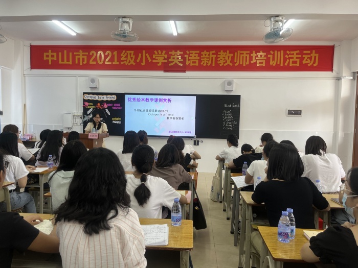 為進(jìn)一步推動小學(xué)英語新教師的專業(yè)化成長,增強(qiáng)教師對小學(xué)英語繪本教學(xué)的認(rèn)識,2022年9月27日下午,中山市2021級小學(xué)英語新教師培訓(xùn)活動在港口鎮(zhèn)群眾小學(xué)舉行,活動主題為“優(yōu)秀繪本課例賞析”,中山市教師發(fā)展中心張梅青主任、港口鎮(zhèn)教育和體育事務(wù)中心吳濤濤老師、港口鎮(zhèn)群眾小學(xué)蘇小蓉副校長、港口鎮(zhèn)小學(xué)英語教研組長蔡東琳老師、中山市2021級小學(xué)英語新教師和群眾小學(xué)英語科組老師參加了本次培訓(xùn)活動。