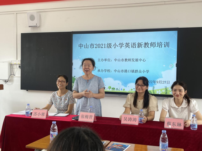 活動開始,中山市教師發(fā)展中心張梅青主任為本次培訓(xùn)活動進(jìn)行簡單的致辭。中山市教師發(fā)展中心張梅青主任首先感謝港口鎮(zhèn)群眾小學(xué)對培訓(xùn)活動的大力支持,勉勵2021級小學(xué)英語新教師在培訓(xùn)中要認(rèn)真觀摩繪本教學(xué)課例,用心聆聽講座,反思自身的教學(xué),借鑒學(xué)習(xí),將所思所學(xué)應(yīng)用于教學(xué)實踐中,不斷提高自身的專業(yè)化水平。港口鎮(zhèn)群眾小學(xué)蘇小蓉副校長代表全校師生歡迎領(lǐng)導(dǎo)和老師們的到來,激勵新教師們認(rèn)真學(xué)習(xí),不斷加強(qiáng)自身專業(yè)化成長。