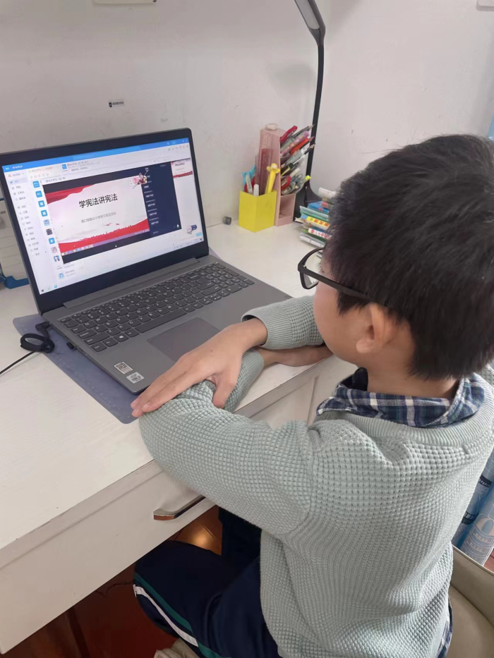 在主題班會(huì)課上,老師讓同學(xué)們了解《中華人民共和國(guó)憲法》是國(guó)家的根本大法,是治國(guó)安邦的總章程,是保持國(guó)家統(tǒng)一、民族團(tuán)結(jié)、經(jīng)濟(jì)發(fā)展、社會(huì)進(jìn)步和長(zhǎng)治久安的法律基礎(chǔ);加深同學(xué)們對(duì)憲法的了解,“國(guó)有國(guó)法,家有家規(guī),校有校紀(jì),無規(guī)矩不成方圓?!比绻麌?guó)家沒有根本的法律,社會(huì)就無法運(yùn)轉(zhuǎn)。如果學(xué)校沒有規(guī)矩,學(xué)習(xí)生活就會(huì)一片混亂。同時(shí)還讓同學(xué)們了解民法典、教育法律法規(guī)、未成年人保護(hù)、公共衛(wèi)生安全、勞動(dòng)教育等方面的法律知識(shí),明確法律的重要性。