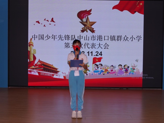 2022年11月24日下午,中國(guó)少年先鋒隊(duì)中山市港口鎮(zhèn)群眾小學(xué)第三次代表大會(huì)在群眾小學(xué)四樓綜合室召開。港口鎮(zhèn)群眾小學(xué)黨支部書記梁銓華同志、盧金連主任、家委會(huì)代表、中隊(duì)輔導(dǎo)員代表和少先隊(duì)員代表共70人出席了本次會(huì)議。