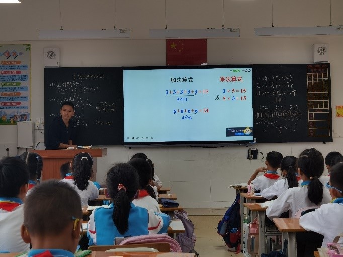 施國民老師執(zhí)教的《乘法的初步認識》一課,從學生的實際出發(fā),利用多媒體呈現(xiàn)的情景,讓學生置身于熟悉的“游樂園”情境中,把數(shù)學問題與學生的生活經(jīng)驗聯(lián)系起來,創(chuàng)設了有價值、有意義的數(shù)學問題情境,激發(fā)了學生的學習興趣,培養(yǎng)了學生解決問題的能力。