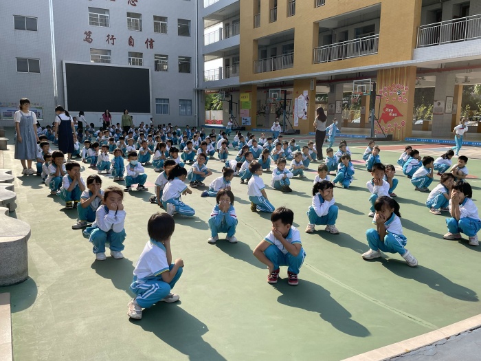 首先,各班班主任分別從三個不同場景給同學(xué)們做了詳細(xì)的逃生講解:地震逃生方式——地震前或輕微搖動時應(yīng)立即往樓下空曠的地方逃避;地震中在教室里的學(xué)生,應(yīng)立即鉆進(jìn)桌椅下或墻角躲避,身體采用臥倒或蹲下的方式。火災(zāi)逃生方式——用毛巾或手捂住口鼻,半彎著腰往樓下空曠的地方逃生。防空襲逃生方式——迅速往樓下空曠的地方逃生,到達(dá)運動場后疏散集合、不扎堆、趴下避免被炮彈擊傷。并且向同學(xué)們明確表示:無論發(fā)生任何突發(fā)事件,都要保持鎮(zhèn)定,切莫驚慌失措,也不要匆忙逃離教室。同學(xué)們都能認(rèn)真、細(xì)致聽從老師的指導(dǎo),并能在相對應(yīng)的場景里做規(guī)范的模擬動作。