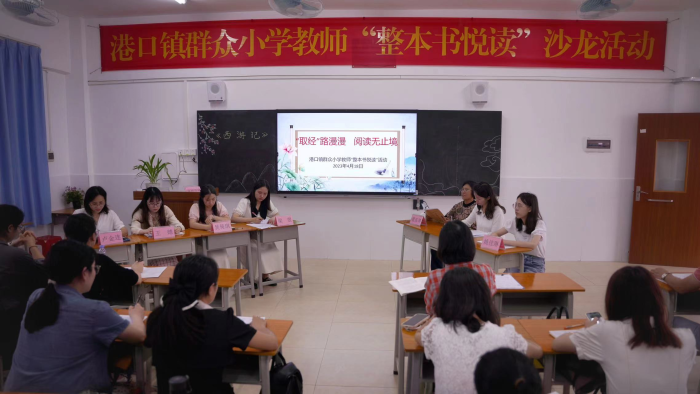 為探究教師引導(dǎo)“整本書悅讀”的課堂教學(xué)方法,提高教師課堂教學(xué)能力,激發(fā)學(xué)生閱讀的興趣,提高師生閱讀能力,4月18日下午,港口鎮(zhèn)群眾小學(xué)舉行 2022 學(xué)年教師“整本書悅讀”沙龍活動(dòng)。此次活動(dòng)邀請(qǐng)港口鎮(zhèn)教育和體育事務(wù)中心蘇彩南老師和兄弟學(xué)校的領(lǐng)導(dǎo)、老師們蒞臨指導(dǎo)工作。