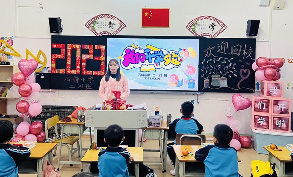 2月6日,伴隨著春天的腳步,石特小學迎來了新學期。校園醒目的歡迎詞,老師們熱情的笑臉,大隊委貼心的服務,為開學季增添了一道靚麗的風景,給返校學子帶來了回家般的親切感。