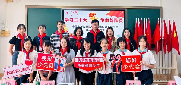 時光見證信仰,歲月磨礪初心。新當(dāng)選的少工委主任蘇少麗校長和港口鎮(zhèn)團(tuán)委副書記胡俊輝均發(fā)表了振奮人心的講話。他們都希望隊(duì)員們能高舉隊(duì)旗跟黨走,堅(jiān)持德智體美勞全面發(fā)展,認(rèn)真學(xué)習(xí),堅(jiān)定理想,磨煉意志,鍛煉體魄,在黨的沐浴下茁壯成長,做新時代好隊(duì)員!