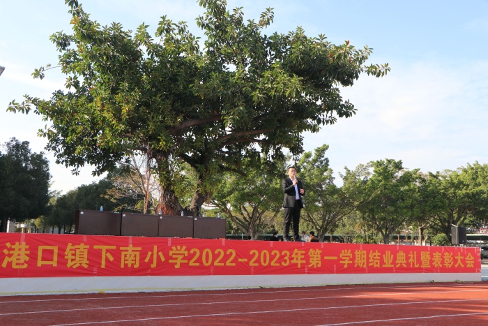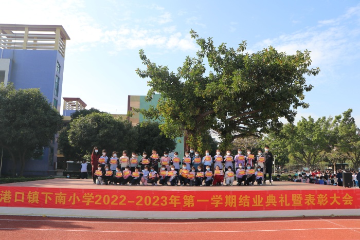 2023年1月6日下午,港口鎮(zhèn)下南小學(xué)在學(xué)校運動場舉行2022-2023學(xué)年第一學(xué)期結(jié)業(yè)典禮暨表彰大會,全校師生參與并邀請了法制安全教育黃慕華副校長參加。