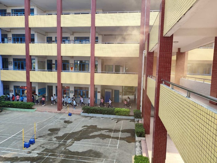 下午3:30分,消防警鈴響起,全體師生立即提高警覺,學(xué)生們在班主任的組織下,捂住口鼻,彎腰低身前行、有序的按照逃生路線逃生??迫卫蠋熢跇翘菘?、教室門口等地點做好值班工作,確保學(xué)生安全撤離。各班班主任帶領(lǐng)學(xué)生安全撤離教室后,樓層負責(zé)人員再次認真檢查每個教室是否遺漏學(xué)生,確保沒有遺漏學(xué)生,再迅速離開現(xiàn)場。隊伍的撤離始終安靜而有秩序,全校師生安全順利的撤離到指定場地。疏散至安全地帶后,班長迅速清點人數(shù)并向校領(lǐng)導(dǎo)報告人數(shù)。整個疏散過程中未發(fā)生任何意外,沒有漏下一個學(xué)生,做到了快速、安全、有序,演習(xí)達到了預(yù)期效果。