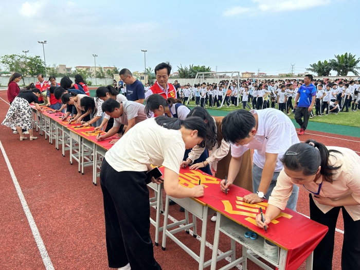 為了讓大家牢記防溺水“六不”,大隊(duì)長(zhǎng)張芷欣同學(xué)帶領(lǐng)全校學(xué)生莊嚴(yán)宣誓。同學(xué)們用自己響亮的聲音,鄭重承諾“六不”:不私自下水游泳;不擅自與他人結(jié)伴游泳;不在無(wú)家長(zhǎng)或老師帶領(lǐng)的情況下游泳;不到無(wú)安全設(shè)施,無(wú)救護(hù)人員的水域游泳;不到不熟悉的水域游泳;不熟悉水性的學(xué)生不擅自下水施救。嚴(yán)肅的誓言在操場(chǎng)上空回蕩,真正讓大家對(duì)防溺水知識(shí)做到“入耳、入腦、入心”?;顒?dòng)的最后,全體師生有序在“防溺水六不”的橫幅上鄭重地簽下自己的名字,以實(shí)際行動(dòng)表明自己珍愛(ài)生命的承諾和決心。