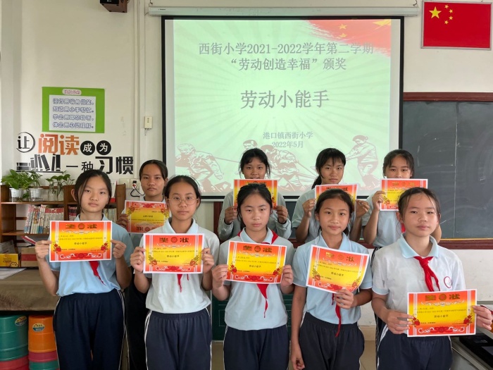 為培養(yǎng)學(xué)生的生活實踐能力,樹立學(xué)生自己的事情自己做的自主意識,提高勞動本領(lǐng)。2022年5月,港口鎮(zhèn)西街小學(xué)開展了以“勞動創(chuàng)造幸福”為主題的勞動教育系列活動。本次活動由西街小學(xué)德育處策劃,學(xué)生以班級為單位參與活動和展示。