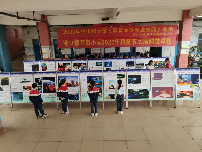 為培養(yǎng)學(xué)生的創(chuàng)新精神和實(shí)踐能力,激發(fā)學(xué)生的科學(xué)學(xué)習(xí)興趣,發(fā)揮學(xué)生潛能,推動(dòng)校園科技活動(dòng)的蓬勃開展,2022年3月21日-4月11日,港口鎮(zhèn)西街小學(xué)攜手中山市科學(xué)館“科普大篷車”一起,正式拉開了西街小學(xué)2022年科技節(jié)的序幕。本次科技節(jié)為期三周,以“高科技探秘”為主題,共設(shè)展示、互動(dòng)、動(dòng)手三個(gè)板塊。