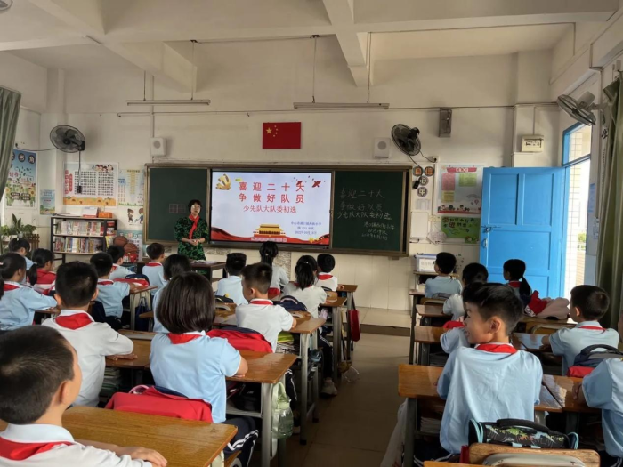 最后,大隊輔導(dǎo)員潘英華老師帶領(lǐng)隊員們呼號:“準(zhǔn)備著,為共產(chǎn)主義事業(yè)而奮斗!”“時刻準(zhǔn)備著!”錚錚誓言表達決心。從今天起,新隊員將肩負共產(chǎn)主義接班人的光榮與使命,奮發(fā)前進!