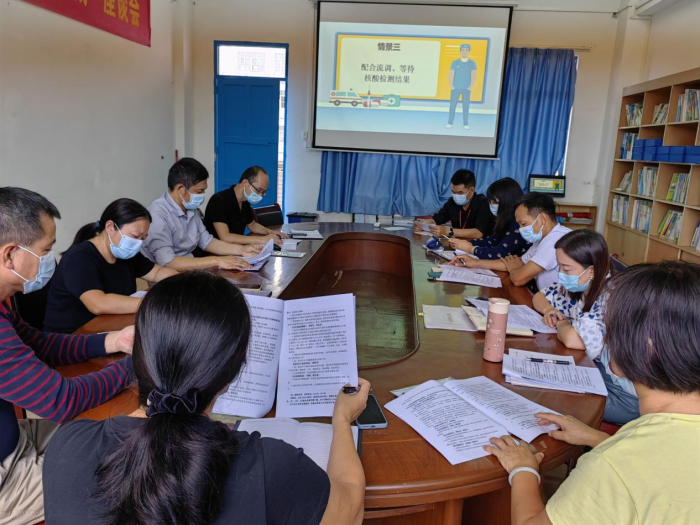 啟動學(xué)校封控應(yīng)急預(yù)案后,梁榮根校長立刻上報港口校園疫情防控專班及港口疾控部門,同時上報市校園疫情防控專班綜合組,啟動聯(lián)防聯(lián)控應(yīng)急預(yù)案,后期持續(xù)跟進(jìn)疾控部門的排查管理工作。信息聯(lián)絡(luò)組和醫(yī)療保障組的林群主任、黃應(yīng)章副主任、梁偉佳主任以及黃梓珊主任負(fù)責(zé)人員分組,記錄臺賬,協(xié)助開展流調(diào)工作,進(jìn)一步明確涉疫人員的判定和管控措施。安全后勤保障組李桂華副校長和黃權(quán)炎書記啟動學(xué)校封閉管理,落實班級網(wǎng)格化管理,規(guī)劃好核酸采樣檢測,保障物資供應(yīng),分類安置相關(guān)人員。教學(xué)調(diào)控組徐艷麗副校長和梁雪芳副主任根據(jù)應(yīng)急響應(yīng)的不同階段,做好交接、轉(zhuǎn)運學(xué)生及家長答疑工作,統(tǒng)籌教師按指引開展線上教學(xué)課程,配合做好輿情管控工作。宣傳和心理疏導(dǎo)組梁雪芳副主任利用線上教學(xué)時間,強調(diào)隔離和居家健康監(jiān)測的紀(jì)律,進(jìn)行感恩教育、生命教育、挫折教育。應(yīng)急響應(yīng)終止后,學(xué)校解除封控管理,梁榮根校長組織疫情防控各小組成員回顧當(dāng)天疫情防控全過程,各部門反思反饋應(yīng)急情況及困難問題,集思廣益,進(jìn)一步優(yōu)化完善應(yīng)急流程,結(jié)合相關(guān)問題情況,調(diào)整方式方法,整理新的應(yīng)急預(yù)案。