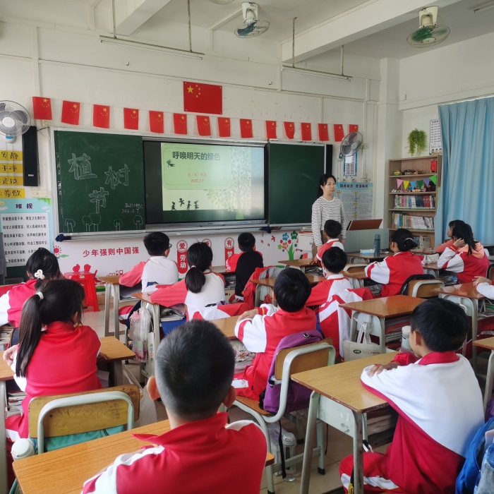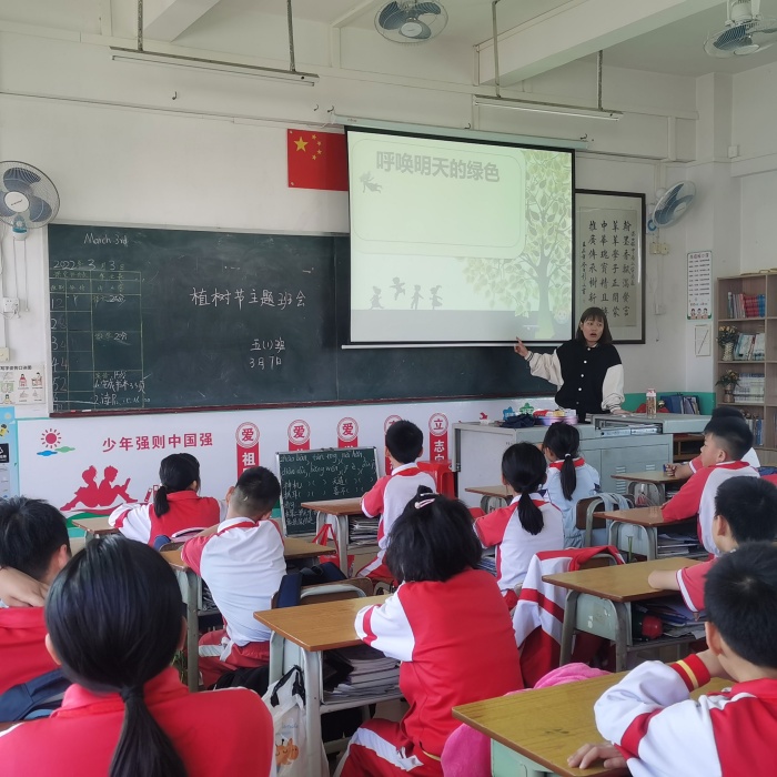 3月14日升旗儀式上,中南小學(xué)德育主任梁倚靜進(jìn)行了活動(dòng)動(dòng)員;下午的班會上,各班主任精心準(zhǔn)備,圖文并茂地向同學(xué)們介紹了植樹節(jié)的由來,同學(xué)們交流探討,從生態(tài)環(huán)境被破壞,地球等待拯救方面闡述了植樹造林、綠化大地的意義,呼吁大家關(guān)心愛護(hù)綠色生命,爭做綠色小使者,以實(shí)際行動(dòng)綠化家園,綠化祖國,保護(hù)地球。