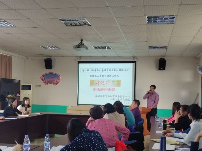 為貫徹落實(shí)教育部統(tǒng)編教材編寫理念和語(yǔ)文教學(xué)思想,關(guān)注單元整體教學(xué),為教師更好地使用統(tǒng)編教材提供研究和實(shí)踐。3月2日下午,港口鎮(zhèn)小學(xué)語(yǔ)文五年級(jí)下冊(cè)綜合性學(xué)習(xí)“遨游漢字王國(guó)”教材解讀專題教研活動(dòng)在中南小學(xué)舉行。港口鎮(zhèn)教育和體育事務(wù)中心蘇彩南老師及全鎮(zhèn)小學(xué)五年級(jí)的語(yǔ)文教師參加了此次活動(dòng)。