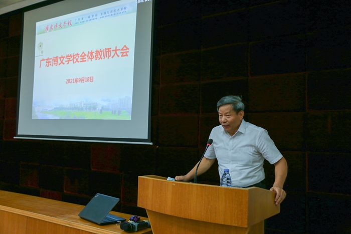 為落實學(xué)校教師黨史學(xué)習(xí)教育和師德、師風(fēng)教育,進一步提升學(xué)校辦學(xué)質(zhì)量,促進學(xué)??沙掷m(xù)發(fā)展,2021年9月18日下午,廣東博文學(xué)校在綜合樓407室舉行全體教師培訓(xùn)大會,學(xué)校校長張海經(jīng)、學(xué)校副校長任德利、黨支部書記李敏及全體教師出席會議,會議由任校長主持。