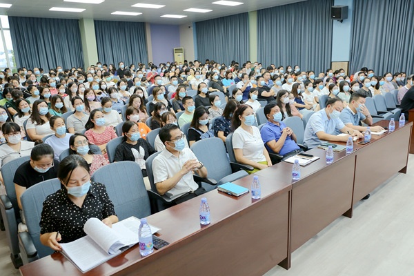 張校長認(rèn)為博文今天的成就源于博文奮斗者,博文需要每一個人去奮斗,唯有奮斗,博文才會有更加美好的未來。面對新形勢,張校長提出新學(xué)年學(xué)校工作思路:以思想建設(shè)為先導(dǎo),以質(zhì)量建設(shè)為中心,以校訓(xùn)教育為動力,以三個從嚴(yán)為抓手,以奮斗者為本,堅持自我反思,促進(jìn)學(xué)校高質(zhì)量發(fā)展。張校長強調(diào),要貫徹黨的教育方針政策,落實立德樹人的根本任務(wù),奉行學(xué)校辦學(xué)理念思想,認(rèn)真貫徹“三種意識”的工作思想,強化“三個第一”的工作作風(fēng),落實“三個從嚴(yán)”的工作方法;希望各位教師在日常工作中不斷自我反思、自我探索、自我成長,做一名奮斗者共同促進(jìn)學(xué)校辦學(xué)水平和質(zhì)量進(jìn)一步提升。