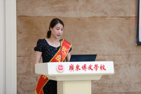 他們舍小家保大家的家國情懷;救死扶傷、醫(yī)者仁心的職業(yè)品格;敢于斗爭、逆行而上的使命擔當;團結一心、同舟共濟的團隊精神,使全場師生肅然起敬、深受鼓舞,潸然淚下,多次給以熱烈的掌聲,廣東博文學校師生們通過詩朗誦表演、抗疫繪畫作品等向抗疫模范表達崇高的敬意。