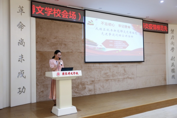 為大力宣傳疫情防控斗爭中涌現出的先進典型,弘揚在危難時刻挺身而出、主動擔當作為的無私奉獻精神,6月29日下午,由開發(fā)區(qū)宣傳辦、精神文明辦主辦,廣東博文學校黨支部協(xié)辦的“火炬區(qū)抗擊新冠肺炎疫情模范先進事跡”巡回宣講活動在廣東博文學校舉行,開發(fā)區(qū)教育事務指導中心副主任關影紅出席,廣東博文學校黨支部書記李敏、黨員、團委及師生參與活動。