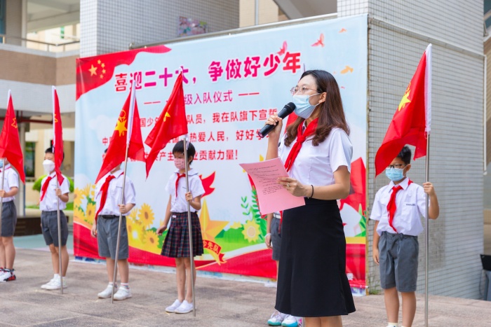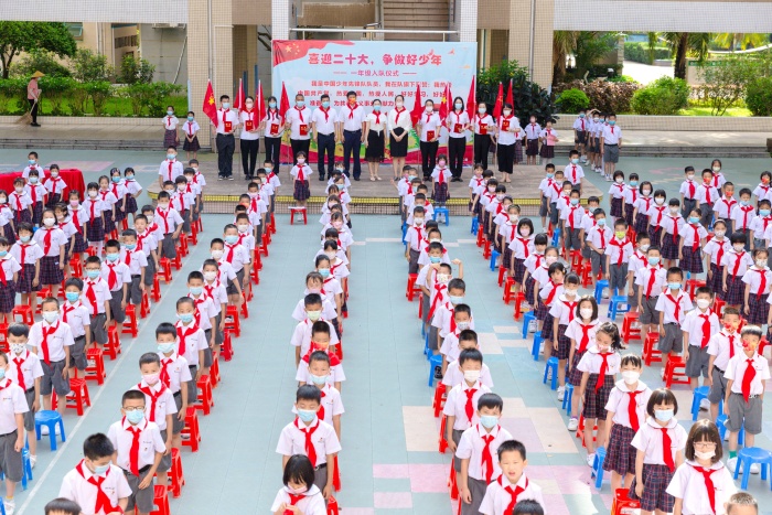 在中國(guó)共產(chǎn)黨第二十次全國(guó)代表大會(huì)即將召開(kāi)之際,廣東博文學(xué)校少工委在學(xué)校黨支部的帶領(lǐng)下,積極完善關(guān)于構(gòu)建少先隊(duì)員階梯式成長(zhǎng)的激勵(lì)體制,旨在增強(qiáng)少先隊(duì)員的光榮感和使命感。廣東博文學(xué)校少工委于2022年6月1日莊嚴(yán)舉行“喜迎二十大,爭(zhēng)做好少年”一年級(jí)入隊(duì)儀式暨紅領(lǐng)巾獎(jiǎng)?wù)聽(tīng)?zhēng)章活動(dòng)啟動(dòng)儀式。本次入隊(duì)儀式以喜迎黨的二十大為契機(jī),讓隊(duì)員們?cè)跓釔?ài)少先隊(duì)的同時(shí),傳承紅色文化、弘揚(yáng)革命精神,滋養(yǎng)隊(duì)員們愛(ài)黨、愛(ài)國(guó)、愛(ài)校、愛(ài)家的情懷。