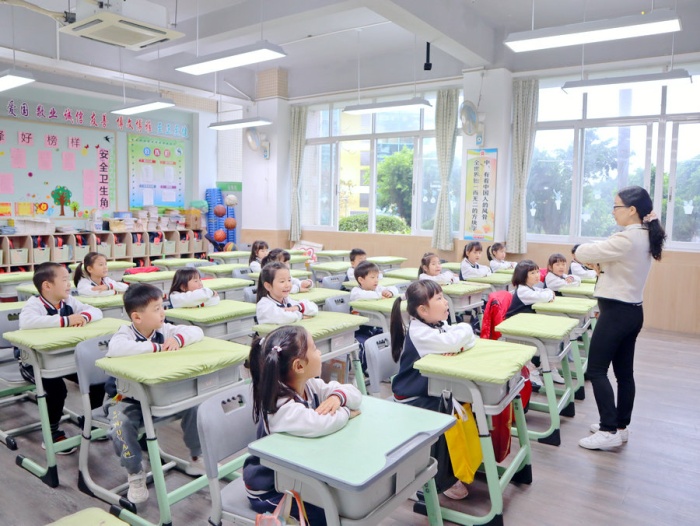 接著寶貝們還到小學(xué)部的課室親身體驗(yàn)小學(xué)課堂。小學(xué)老師的上課方式讓孩子們感到新奇無(wú)比,對(duì)幼兒園的寶貝而言,小學(xué)是一個(gè)既陌生又神奇的地方。他們滿懷期待的走進(jìn)教室,坐在座位上開心地參與課堂活動(dòng),回答老師的提問,與小伙伴積極互動(dòng),激動(dòng)和好奇在臉上洋溢出來(lái)。除了上課,寶貝們還觀看了哥哥姐姐們莊嚴(yán)的升旗儀式、精神抖擻的早操等,寶貝們對(duì)哥哥姐姐的表現(xiàn)都豎起大拇指,更期待自己能成為一名優(yōu)秀的小學(xué)生了!
