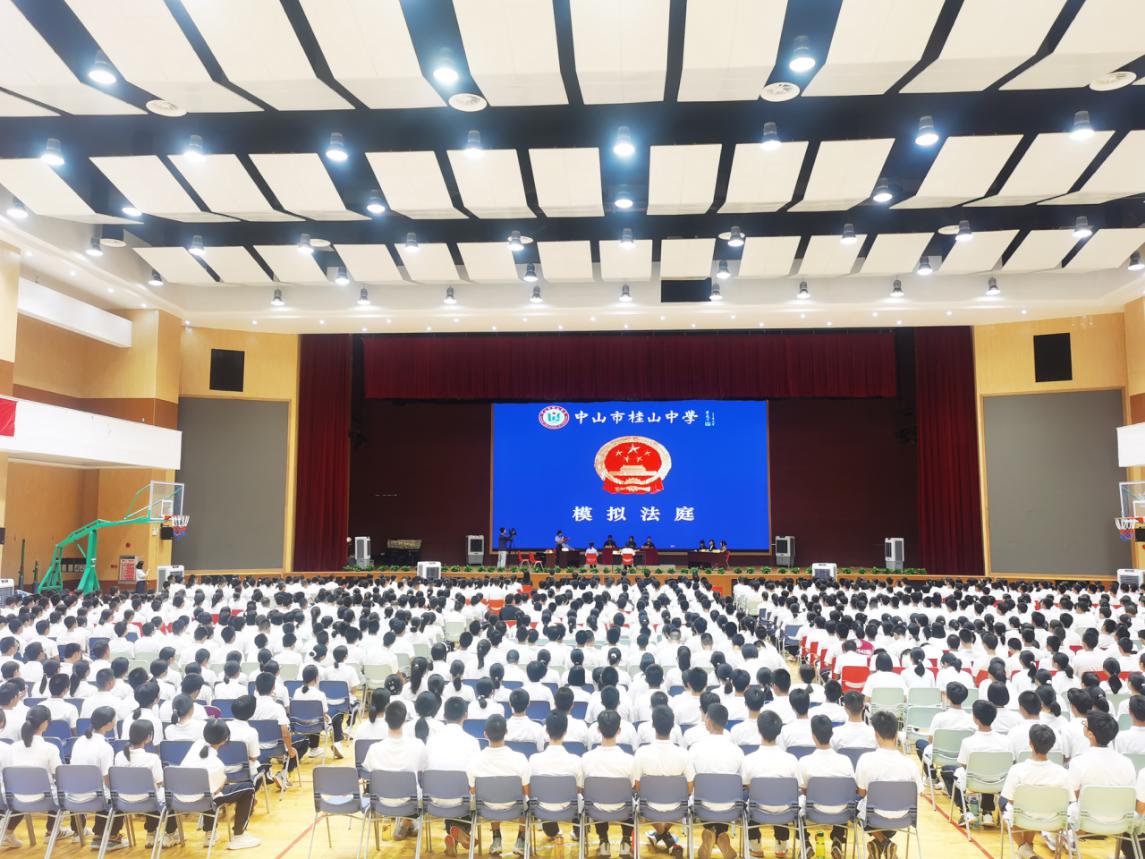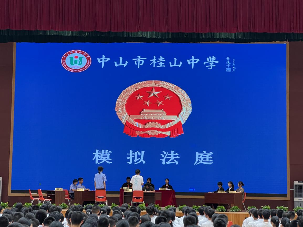 法律是用來保護每一位正直、善良公民的利劍。為了深入推進“法治進校園”工作,豐富學校法治教育宣傳形式,增強同學們的法治意識及辨別是非的能力,防止校園欺凌、性侵害等惡性事件的發(fā)生,9月15日下午,桂山中學2022年模擬法庭現(xiàn)場教學活動在陳戈平體育館如期舉行?;顒佑筛咭荒昙壍掠魅味≡浦局鞒?。