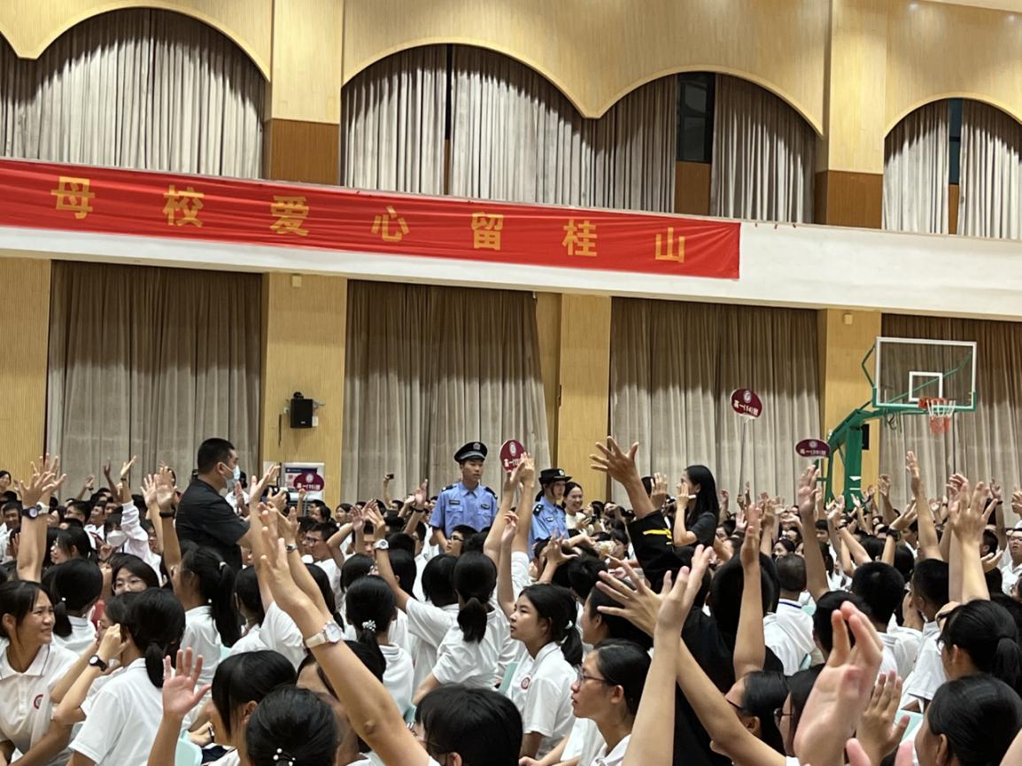 中山市第一人民法院刑事審判庭一級法官彭應梅、中山市第一人民法院執(zhí)行局執(zhí)行實施團隊庭長陳標科、桂山中學副校長陳福生、中山市第一人民法院審管辦書記員吳娟歡、中山市第一人民法院審管辦書記員苑鵬、桂山中學德育處劉浩主任、饒平縣田家炳中學德育處田炳通主任出席本次活動。