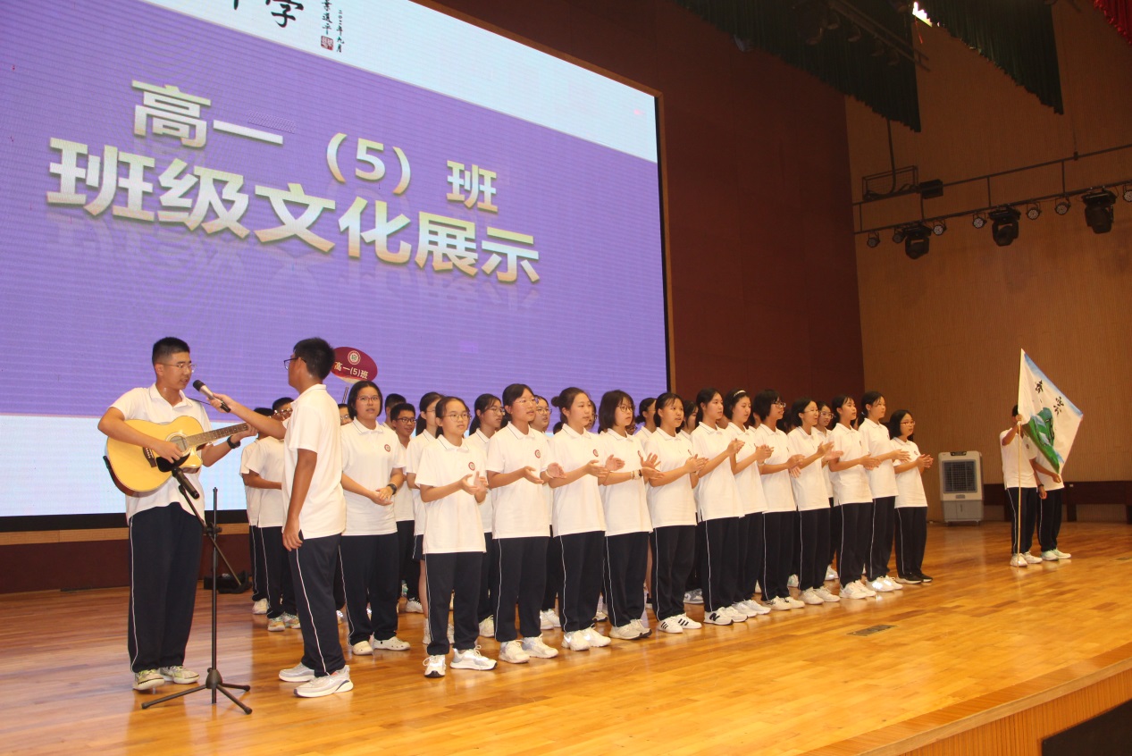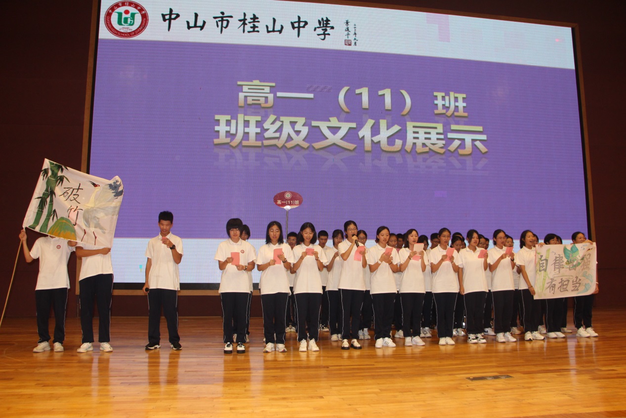 在此之前,每個(gè)班級(jí)都為此次展示做了充足的準(zhǔn)備。高一的同學(xué)們?cè)诎嘀魅闻c心理科組老師的帶領(lǐng)下,利用課余時(shí)間精心創(chuàng)作了班級(jí)班名、班歌、班旗、班級(jí)口號(hào)和班級(jí)公約。在上臺(tái)展示時(shí),每個(gè)班級(jí)都使出護(hù)身解數(shù),同學(xué)們勇敢而自信地介紹著自己班級(jí)的班旗設(shè)計(jì)理念、班級(jí)公約和班級(jí)口號(hào),同時(shí)還在展示中融入了吉他、歌曲、口哨等元素,各具風(fēng)采,創(chuàng)意無(wú)限。活動(dòng)共評(píng)出了最佳精神士氣、最佳團(tuán)結(jié)協(xié)作、最佳風(fēng)紀(jì)禮儀、最佳班旗設(shè)計(jì)、最具特色等多個(gè)獎(jiǎng)項(xiàng)。獲獎(jiǎng)班級(jí)獲得了具有紀(jì)念意義的獎(jiǎng)品——彩色絲帶。絲帶寓意著新一屆的桂山學(xué)子,能秉承桂山的優(yōu)良傳統(tǒng),團(tuán)結(jié)拼搏,奮發(fā)進(jìn)取。