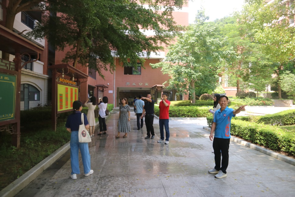 隨后,在劉浩主任和陳建科副主任的帶領(lǐng)下,永安中學(xué)德育教師隊(duì)伍參觀了學(xué)校校園。在參觀過程中,劉浩主任和陳建科副主任詳細(xì)介紹了學(xué)校的宣傳欄等校園文化建設(shè),宿舍的設(shè)施設(shè)備、日常管理,以及學(xué)生活動(dòng)等。這些內(nèi)容引起了永安中學(xué)同仁的濃厚興趣,老師們一邊參觀一邊熱烈交流討論。