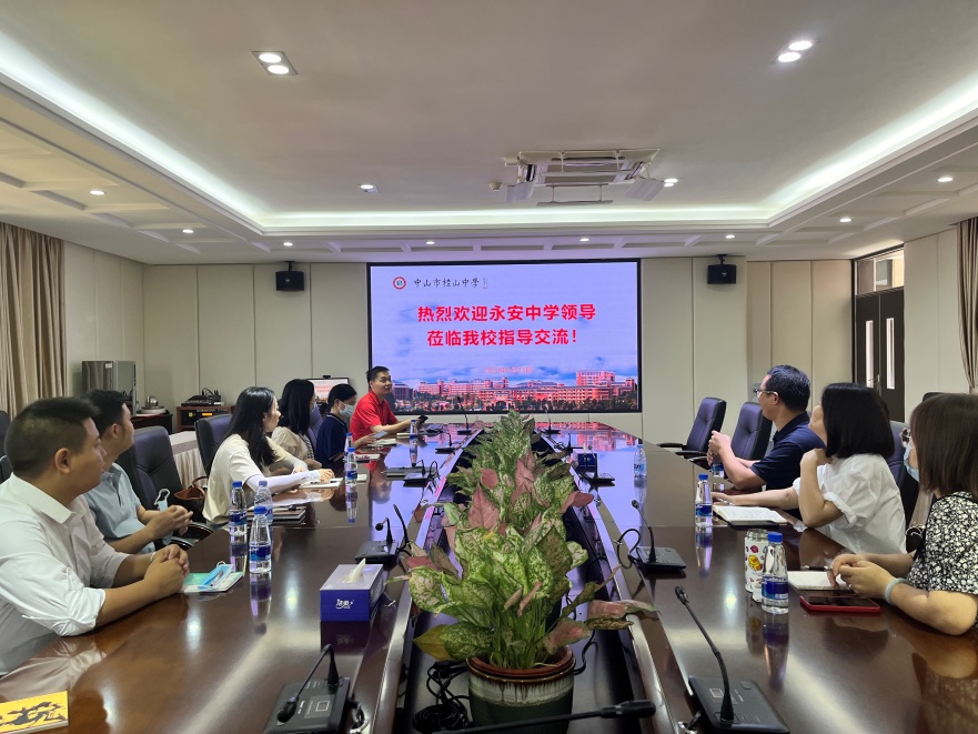 8月23日上午,在新學(xué)年即將開始之際,中山市永安中學(xué)張仁勇副校長(zhǎng)帶領(lǐng)德育教師隊(duì)伍一行10人蒞臨桂山中學(xué),就德育工作、校園文化建設(shè)、信息化技術(shù)應(yīng)用等展開交流。