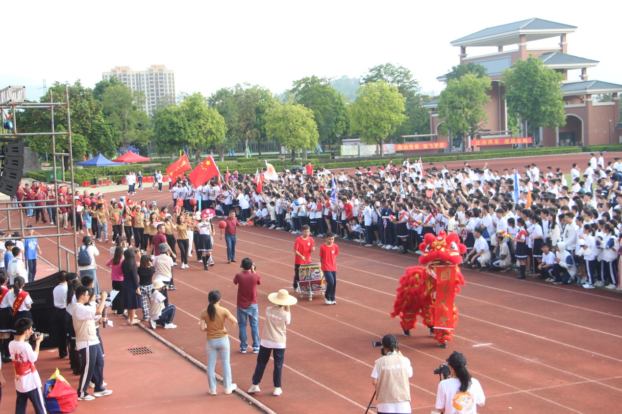“中山市桂山中學(xué)2022年田徑運(yùn)動(dòng)會(huì)開幕!”董再明校長(zhǎng)用洪亮的聲音宣布運(yùn)動(dòng)會(huì)正式拉開帷幕。