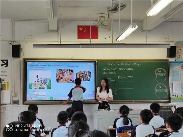 2022年6月3日,英語組長蘇麗梅老師進行了公開課展示,課堂內容是五年級下冊U3 On Vacation故事板塊,蘇老師巧妙地運用了信息技術,如視頻、圖片等創(chuàng)設語境及提問等方式創(chuàng)設了一個情境,讓學生入景動情,使其受到感染,并以積極的態(tài)度投入到學習中。