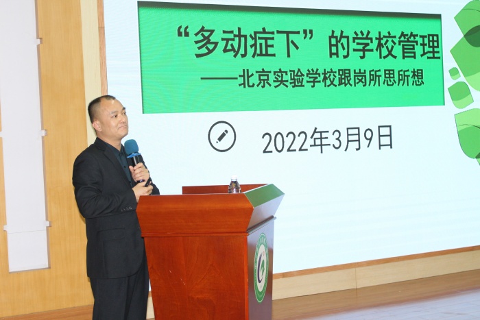 古鎮(zhèn)鎮(zhèn)曹二小學(xué)校長(zhǎng)邱波在論壇上作了題為《“多動(dòng)癥”下的學(xué)校管理》的專題講座。在專題講座上,邱校長(zhǎng)將自己去年在北京實(shí)驗(yàn)學(xué)校跟崗學(xué)習(xí)收獲到的北京實(shí)驗(yàn)學(xué)校教育集團(tuán)校長(zhǎng)曾軍良的優(yōu)秀教育經(jīng)驗(yàn)、管理經(jīng)驗(yàn)毫無(wú)保留地分享給大家。隨后,邱校長(zhǎng)還將在跟崗學(xué)習(xí)中學(xué)到的寶貴經(jīng)驗(yàn)與曹二小學(xué)的實(shí)際情況相結(jié)合向大家詳盡地介紹了曹二小學(xué)的創(chuàng)辦歷史、發(fā)展歷程、發(fā)展規(guī)劃。他還表示本次學(xué)習(xí)結(jié)交到了一些志同道合的教育知音,與優(yōu)秀的人為伍他深受感染,他也將學(xué)以致用踐行發(fā)展曹二小學(xué)“立人教育”理念。