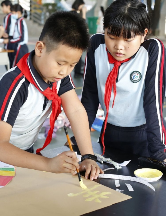 伴隨著動聽的歌聲,活動有序開展,各班圍繞美麗的燈都、豐富的校園生活創(chuàng)作,燈都標志性建筑、亞洲飛人蘇炳添、燈光秀、嶄新的曹二小學校門、黨員學習基地、學校特色課程等題材創(chuàng)作。同學們用手中畫筆把自己的情愫凝結(jié)在一張張畫作上,匯聚對母校的深厚感情,用樸實的“畫”語,凝深厚的情感,謹獻給母校50周年華誕。