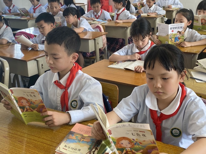 本次讀書活動,由各班語文老師根據(jù)班級情況,選取了一本書作為共讀書目,在課上、課下共同閱讀。各班閱讀的書目,有夢幻的童話王國、奇幻的神話世界;也有《湯姆·索亞歷險記》《西游記》《三國演義》等文學(xué)名著,多姿多彩。
