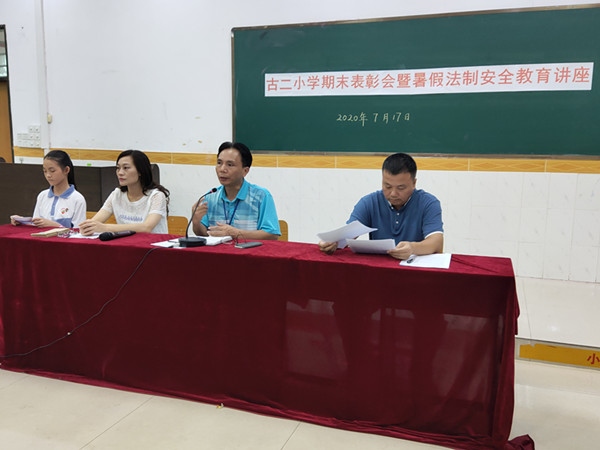 為表彰先進(jìn),樹(shù)立典型,激勵(lì)師生在下學(xué)期中取長(zhǎng)補(bǔ)短,努力學(xué)習(xí),爭(zhēng)取更大進(jìn)步,以及進(jìn)行暑假法制安全教育及布置暑假德育實(shí)踐任務(wù)。2020年月7月17日下午,古鎮(zhèn)鎮(zhèn)古二小學(xué)舉行了2019學(xué)年度第二學(xué)期期末總結(jié)表彰大會(huì)暨暑假法制安全教育講座,同學(xué)們帶著愉快輕松地心情參加了本學(xué)期的期末總結(jié)大會(huì)。本次活動(dòng)采取釘釘直播的形式進(jìn)行,全體師生參加。