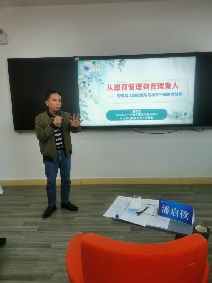 培訓(xùn)之初,潘啟欽校長先作了簡短的開班儀式講話,希望老師們轉(zhuǎn)換角色,提高認識,認真聆聽,學(xué)有所獲。開班儀式后,培訓(xùn)學(xué)習(xí)正式拉開序幕。首先為大家?guī)淼谝恢v的是來自中山市石歧楊仙逸小學(xué)的潘志堅校長,潘校長給學(xué)員分享了《從德育管理到管理育人》專題講座。他具體從德育管理、管理育人與素養(yǎng)修煉三個方面展開論述,為學(xué)員們詳細介紹了德育工作在教學(xué)中的重要性,也為學(xué)員提供了一系列具有操作性的意見。潘校長對于德育的經(jīng)驗娓娓道來,學(xué)員們用心聆聽,度過了一個充實的上午。
