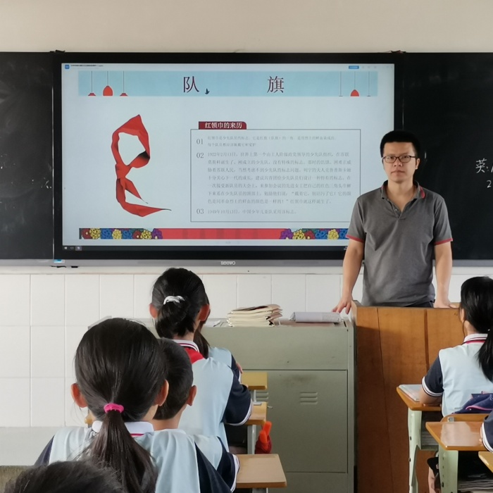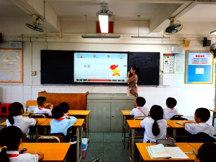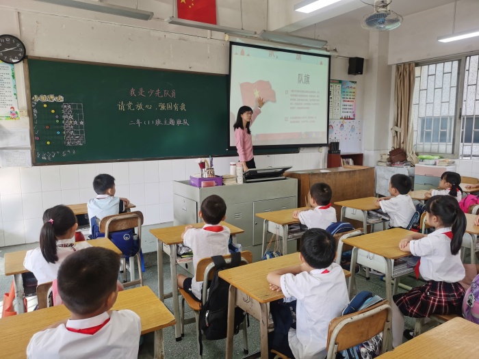 上課鈴聲一響,各班中隊輔導員紛紛打開電腦課件,與孩子一起學習“請黨放心,強國有我”的主題班會。主題內(nèi)容豐富多彩,有認識什么是少先隊員、有隊旗的認識,有知識競答和前輩的期望等。課中,孩子們端正坐,認真聽,用心記,動腦想。尤其是對于前輩的諄諄教誨,孩子們銘記于心!還有些班級同學立正舉起右拳宣誓:請黨放心,強國有我!活動中,整個校園唱響了中國少年先鋒隊隊歌,歌聲嘹亮!