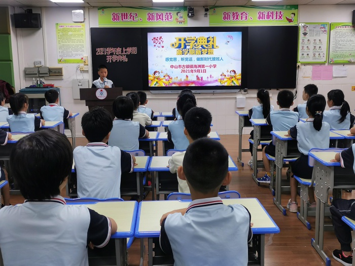 新學(xué)年,新目標(biāo),新征程。帶著對(duì)暑假生活的美好回憶,懷著對(duì)新學(xué)期新生活的美好向往,海洲第一小學(xué)全體師生回到了熟悉的校園,開(kāi)啟了新學(xué)期的征程。2021年9月1日上午,古鎮(zhèn)鎮(zhèn)海洲第一小學(xué)利用校園廣播系統(tǒng)舉行了新學(xué)期開(kāi)學(xué)典禮。