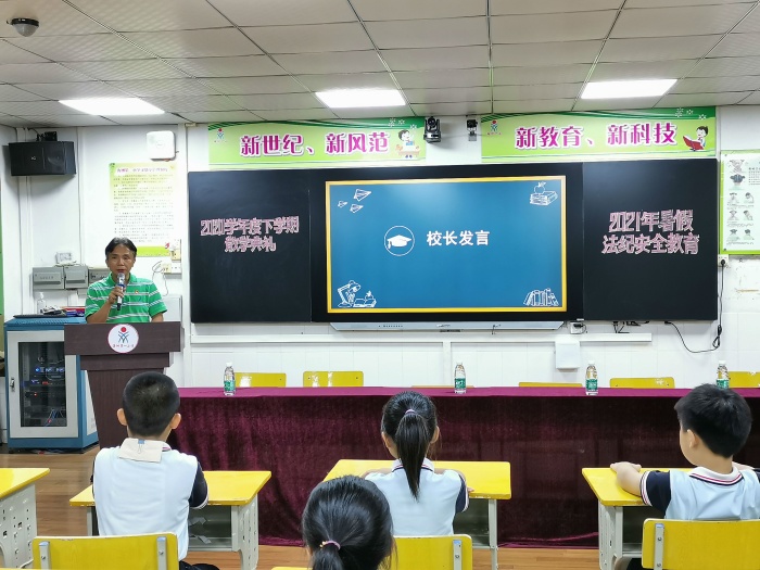 7月2日下午,海洲第一小學(xué)在錄播室舉行2021年暑假法紀(jì)安全教育暨2020學(xué)年下學(xué)期散學(xué)典禮。