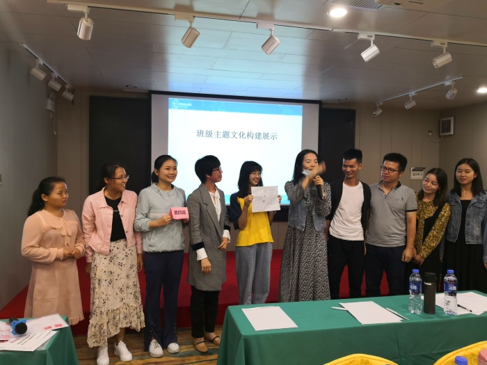 第一天的培訓(xùn)由廣東省名班主任工作室主持人王秀菊老師拉開序幕,王老師以自己創(chuàng)建的全國聞名的“小三國班”為例,給在場的老師們帶來了《基于核心素養(yǎng)的班級主題文化構(gòu)建》的精彩講座。王老師還現(xiàn)場組織培訓(xùn)的老師們以小組為單位去交流討論并設(shè)計班級主題文化,海洲一小的三名老師踴躍參與、樂在其中,并且上臺展示出了小組精彩的特色設(shè)計。