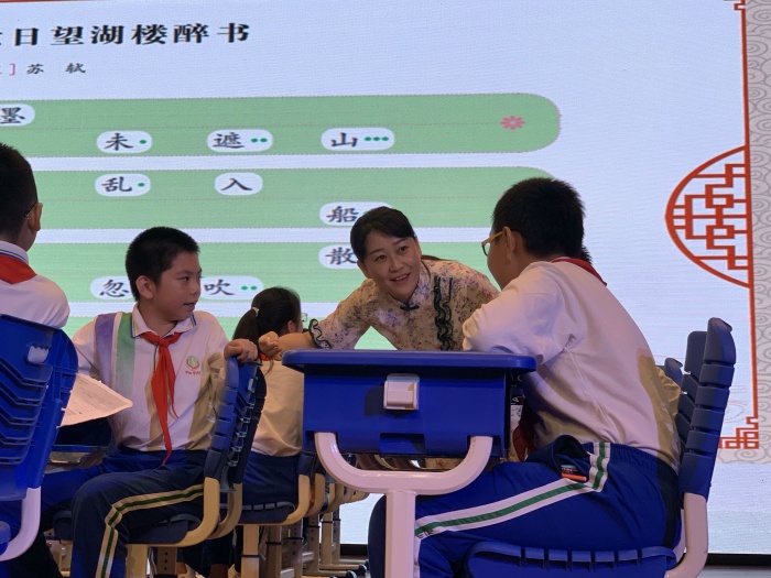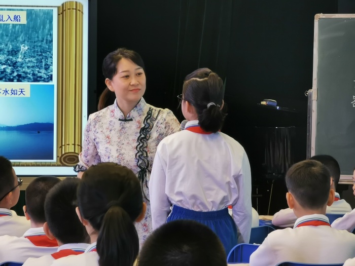 本次活動(dòng)在古詩(shī)文吟誦節(jié)目中拉開(kāi)帷幕,孩子們吟詠著詩(shī)文,讓現(xiàn)場(chǎng)的老師們聽(tīng)得如癡如醉。在研討課環(huán)節(jié),華南師范附屬中學(xué)程勛章老師帶來(lái)了一節(jié)基礎(chǔ)夯實(shí)、思想深遠(yuǎn)的八年級(jí)古詩(shī)吟誦課《使至塞上》。海洲第一小學(xué)趙紅月主任執(zhí)教的篇目為六年級(jí)古詩(shī)《六月二十七日望湖樓醉書(shū)》,課堂上趙主任吟誦優(yōu)美動(dòng)聽(tīng),學(xué)生回答精彩機(jī)智,贏得了在場(chǎng)觀課老師的陣陣掌聲。課后,市傳統(tǒng)文化中心教研組的成員以研討課為切入點(diǎn),結(jié)合一線教學(xué)實(shí)際,探討吟誦進(jìn)入課堂的實(shí)操困惑并提出了解決方案與意見(jiàn)來(lái)拋磚引玉,進(jìn)入專(zhuān)家點(diǎn)評(píng)環(huán)節(jié)。點(diǎn)評(píng)環(huán)節(jié)中,首都師范大學(xué)徐健順教授,中山市教育學(xué)會(huì)陳春艷會(huì)長(zhǎng),廣州華師附小梁承穗老師皆對(duì)兩節(jié)研討課作出了高度評(píng)價(jià),同時(shí)還解答了老師們關(guān)于“課堂中如何發(fā)揮吟誦教學(xué)的作用?”這一困惑。