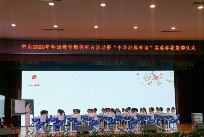 為推進(jìn)中華優(yōu)秀傳統(tǒng)文化進(jìn)校園,進(jìn)課堂,提高古詩(shī)文吟誦教學(xué)的有效性,中山市教研室于10月16日在中山市華南師范大學(xué)中山附屬中學(xué)舉辦中山市2020年吟誦教學(xué)課例研討活動(dòng)暨“中華經(jīng)典吟誦實(shí)驗(yàn)學(xué)校”授牌儀式。海洲第一小學(xué)被評(píng)為首批“中山市中華經(jīng)典吟誦實(shí)驗(yàn)學(xué)校”,潘啟欽校長(zhǎng)、趙紅月主任、袁美歡老師、范佳慧老師和巫勇華老師參與本次活動(dòng)。其中,趙紅月主任受邀在本次活動(dòng)中上吟誦教學(xué)的展示課例。