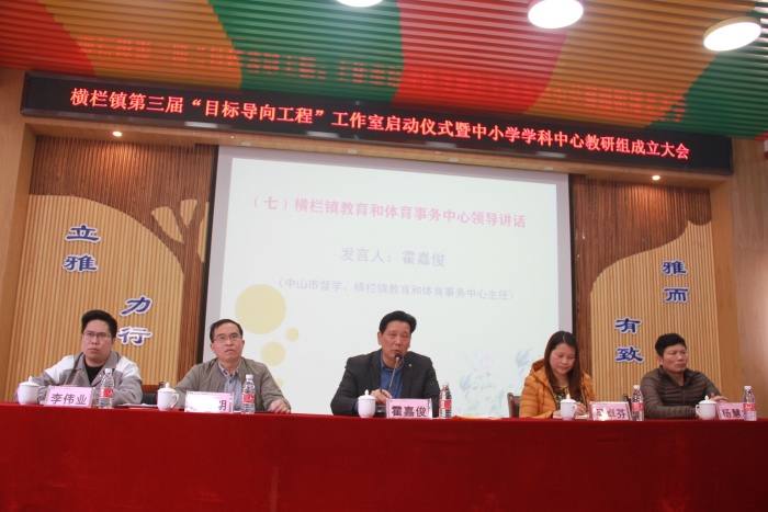 中山市督學(xué)、橫欄鎮(zhèn)教育和體育事務(wù)中心主任霍嘉俊在大會(huì)上作了講話,對(duì)榮獲橫欄鎮(zhèn)第三屆名校長(zhǎng)、名教師、名德育干部、名班主任和學(xué)科帶頭人榮譽(yù)稱號(hào)的各位校長(zhǎng)和老師們表示熱烈的祝賀,肯定了大家為橫欄教育事業(yè)的快速發(fā)展所作出的貢獻(xiàn)。他給主持人們提出了“四要”建議:一是要樹立堅(jiān)定的教育教學(xué)信仰,不斷提升個(gè)人的專業(yè)素養(yǎng);二是要珍惜機(jī)會(huì),抓住機(jī)遇,提升自我,爭(zhēng)取“實(shí)至名歸”;三是要充分展示自己的教育智慧、教學(xué)水平,在更大的范圍內(nèi)、在更深的層次上發(fā)揮好示范、帶動(dòng)作用;四是要做規(guī)范辦學(xué)、推進(jìn)素質(zhì)教育的典范,做教育教學(xué)改革、教育教學(xué)創(chuàng)新的探索者。借此機(jī)會(huì),霍嘉俊也轉(zhuǎn)達(dá)了橫欄鎮(zhèn)副鎮(zhèn)長(zhǎng)蔡榮輝的祝福和寄語(yǔ),希望大家充分利用好工作室這個(gè)發(fā)展平臺(tái),提升自己的專業(yè)素養(yǎng),進(jìn)一步錘煉和積淀個(gè)人的教學(xué)智慧,努力在課堂教學(xué)領(lǐng)域研有所成,不斷提升個(gè)人的教學(xué)水平和科研能力,為促進(jìn)橫欄鎮(zhèn)教育發(fā)展作出應(yīng)有的努力和貢獻(xiàn)。