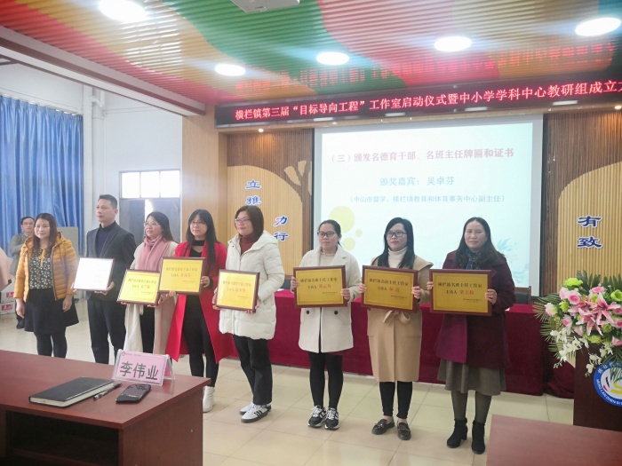 在熱烈的掌聲中,橫欄鎮(zhèn)教育和體育事務(wù)中心專干楊慧才為王欣等學(xué)科帶頭人頒發(fā)了榮譽(yù)證書;中山市督學(xué)、橫欄鎮(zhèn)教育和體育事務(wù)中心副主任吳卓芬為陳冬華等名德育干部、龔云丹等名班主任頒發(fā)了牌匾和榮譽(yù)證書;中山市督學(xué)、橫欄鎮(zhèn)教育和體育事務(wù)中心主任霍嘉俊為名校長(zhǎng)歐慧芳、王春明等名教師頒發(fā)了牌匾和榮譽(yù)證書。手捧牌匾和證書,老師們的臉上露出了自豪、幸福的笑容。