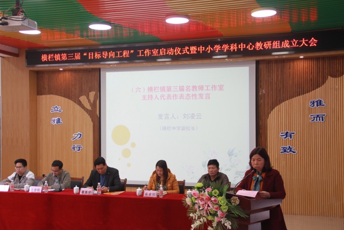 橫欄鎮(zhèn)第三屆名教師工作室主持人代表橫欄中學(xué)副校長(zhǎng)劉凌云也作了表態(tài)性發(fā)言。劉凌云表示,作為工作室的主持人,深感責(zé)任之重大、任務(wù)之艱巨、擔(dān)子之沉重,清楚知道工作室是陣地,是機(jī)遇,是挑戰(zhàn),更是奉獻(xiàn)。劉凌云代表工作室全體成員鄭重承諾:首先要有不辱使命的意識(shí),其次要有精誠(chéng)合作、銳意進(jìn)取、敢闖敢拼的精神,用勤勞的雙手、辛勤的汗水去耕耘和澆灌工作室這塊樂土,使之成為教學(xué)研討的“集散地”、青年教師成長(zhǎng)的“助推器”、名師培養(yǎng)的“孵化器”。