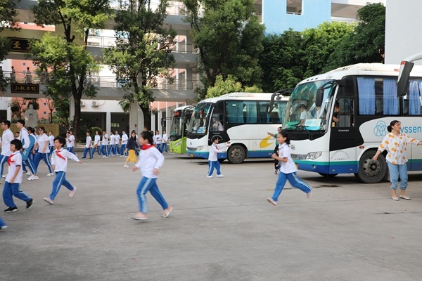 疏散演練活動開始前,校車接送老師指導(dǎo)學(xué)生上車系好安全帶,并對校車發(fā)生的意外可能性、處理措施、逃生自救技巧、消防基本常識等進行了詳細講解,并告知學(xué)生遇到緊急情況時應(yīng)保持冷靜、聽從指揮。