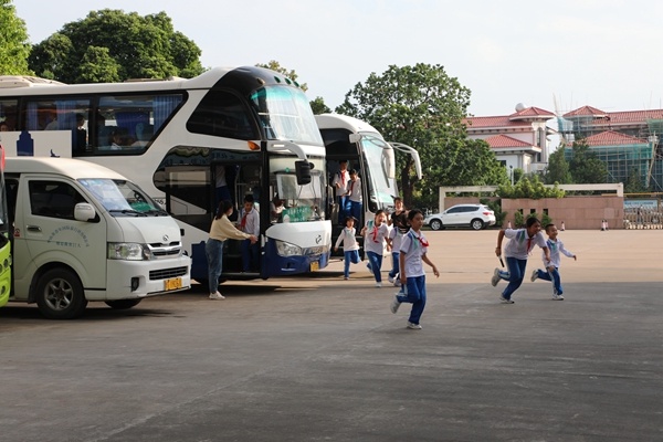 演練中,當(dāng)遇到緊急情況時,老師會揮動小紅旗,看到揮動小紅旗時,司機迅速停車,打開車門,跟車老師要求學(xué)生保持鎮(zhèn)定,先解開安全帶,并按照“由前到后,先左后右”的順序依次從車的前門和中門安全撤離。在離車50米外的區(qū)域有序集合,再由老師快速清點人數(shù),以確保每個學(xué)生的安全?;顒拥淖詈?,由王學(xué)坤副校長對此次演練活動進行小結(jié)。他對這次安全演練活動給予了充分的肯定,并希望全體師生牢記乘車要求,遇到突發(fā)情況科學(xué)冷靜應(yīng)對,把乘車安全牢記心中。